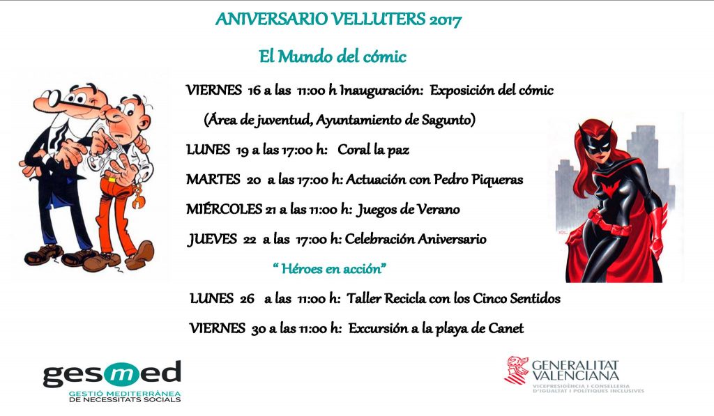 En este mes de junio hemos celebrado el Aniversario de nuestra Residencia de Tercera Edad y Centro de Día de Velluters ubicado en el centro de Valencia. La programación ha ido dedicada al mundo del cómic y a los superhéroes.
