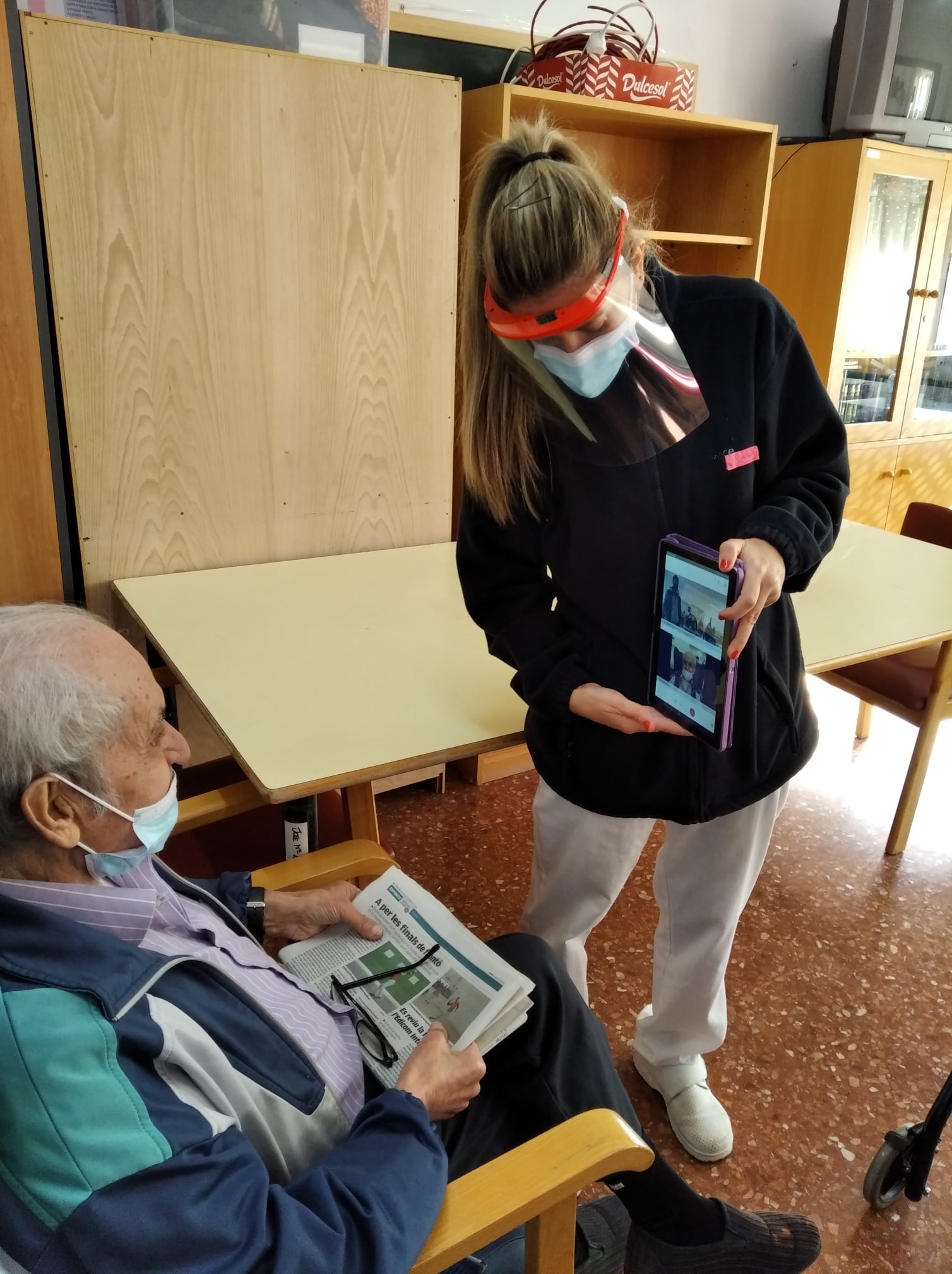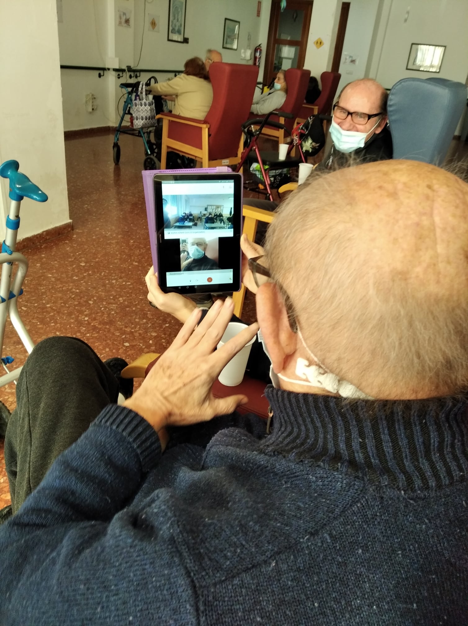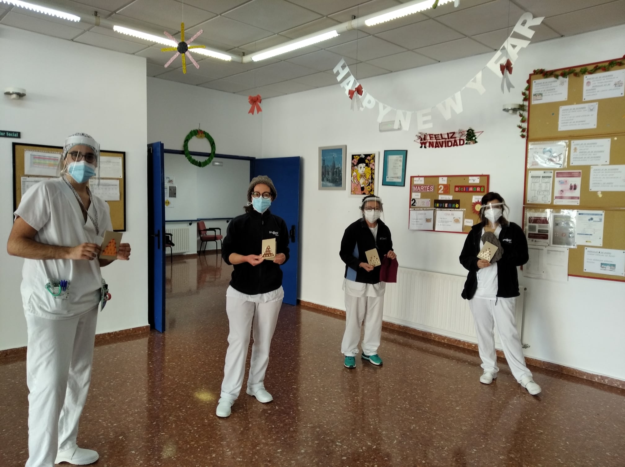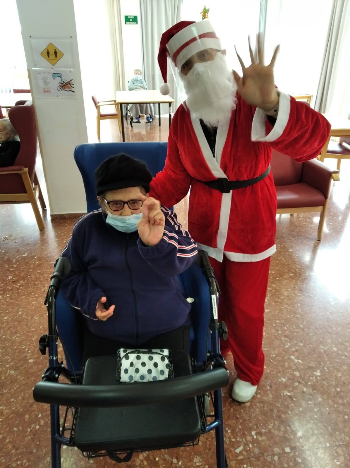 Semana navideña en Massamagrell con almuerzo especial, videollamada con el IES Massamagrell y visita de Papá Noel, que nos trajo un montón de vídeos familiares para nuestros residentes. ¡Feliz Navidad!