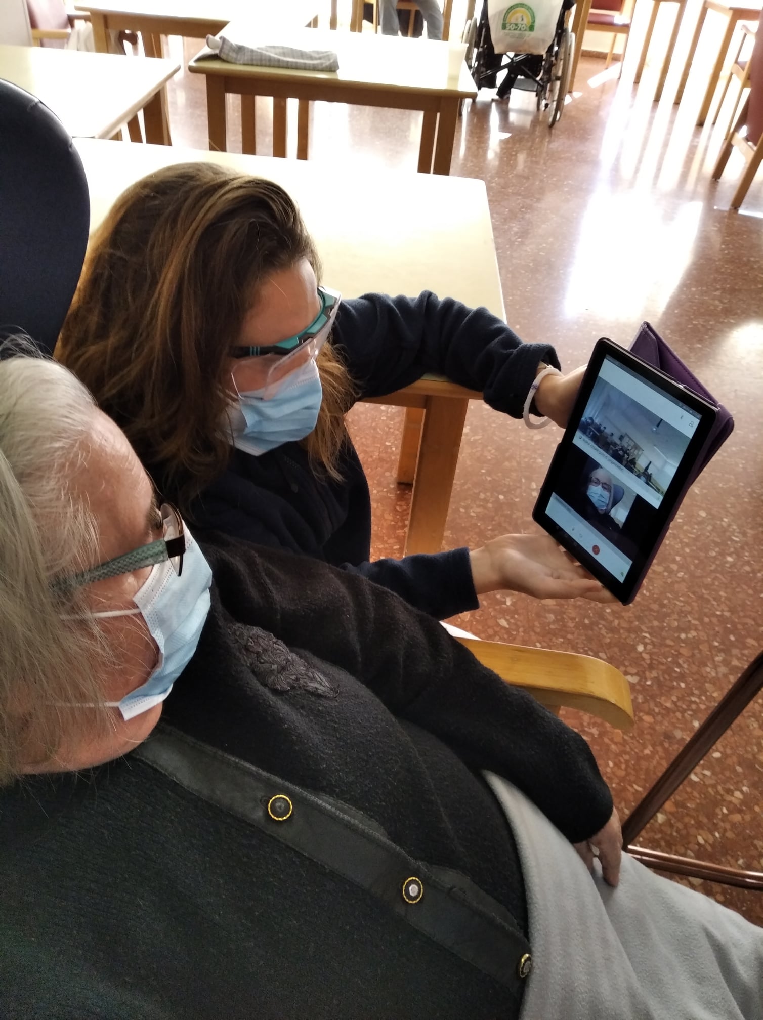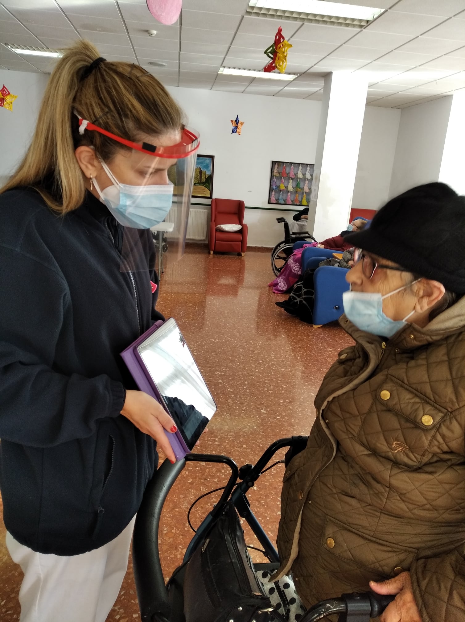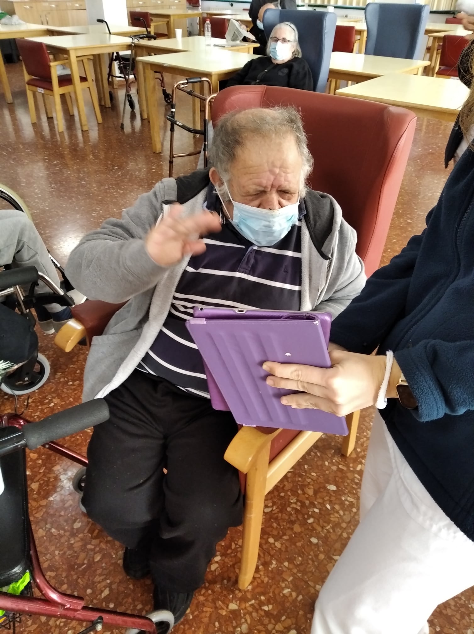 Semana navideña en Massamagrell con almuerzo especial, videollamada con el IES Massamagrell y visita de Papá Noel, que nos trajo un montón de vídeos familiares para nuestros residentes. ¡Feliz Navidad!