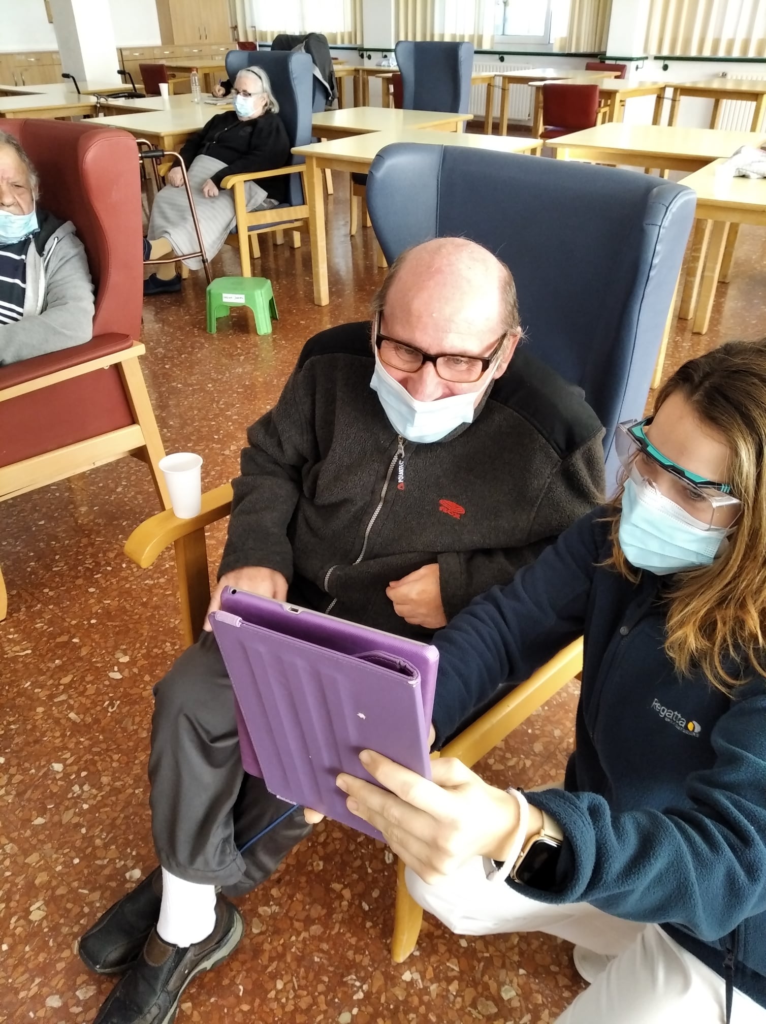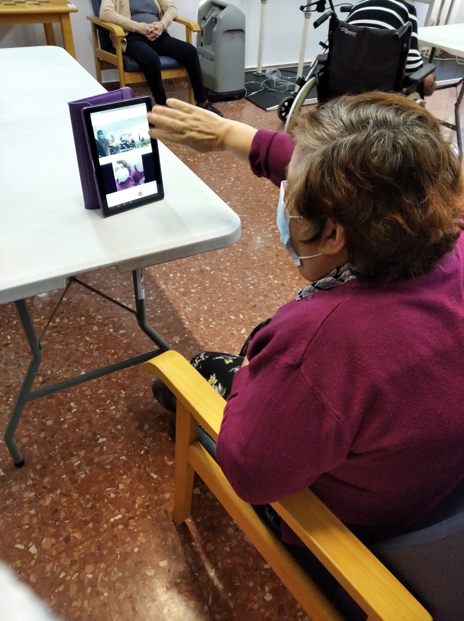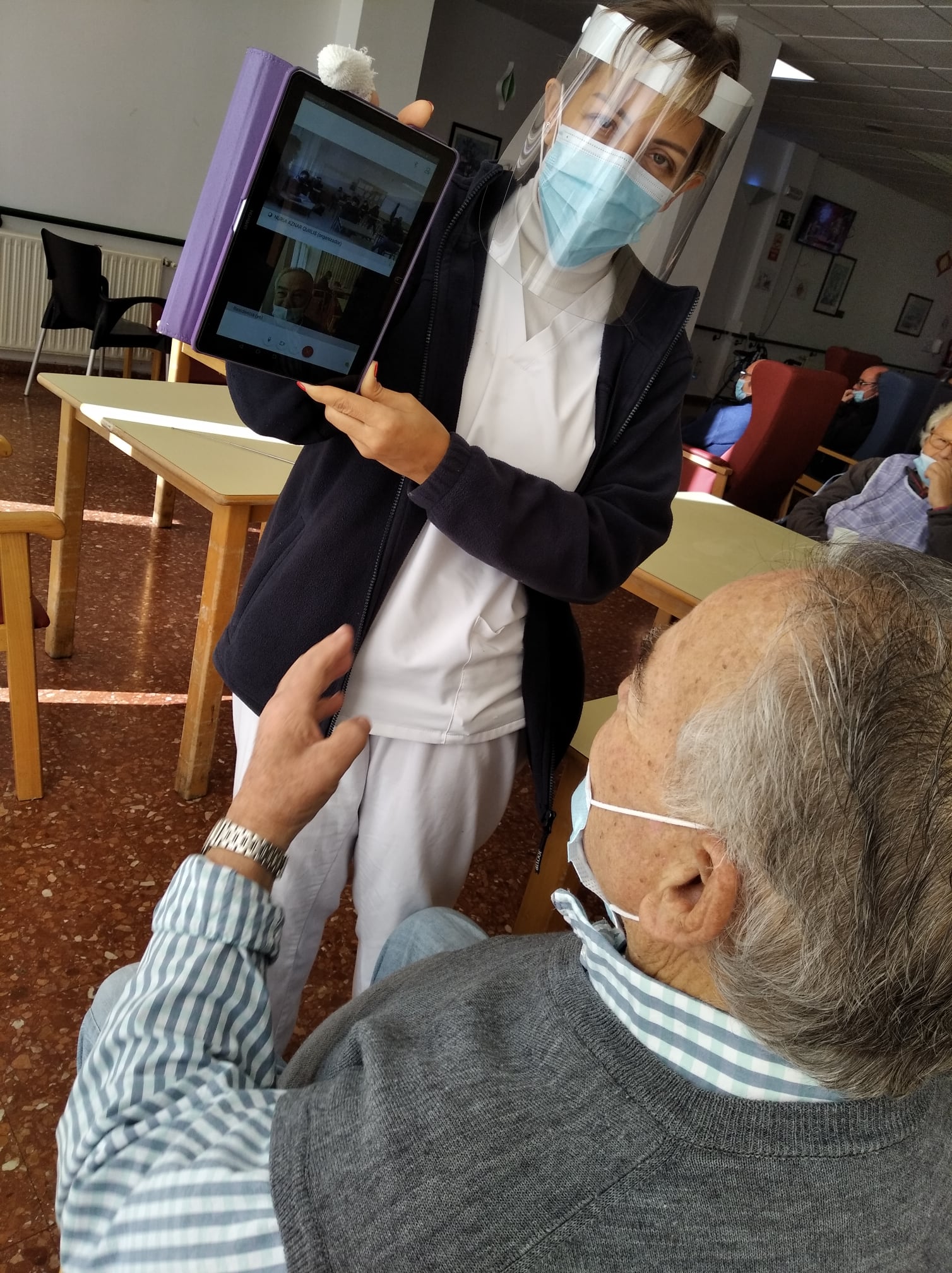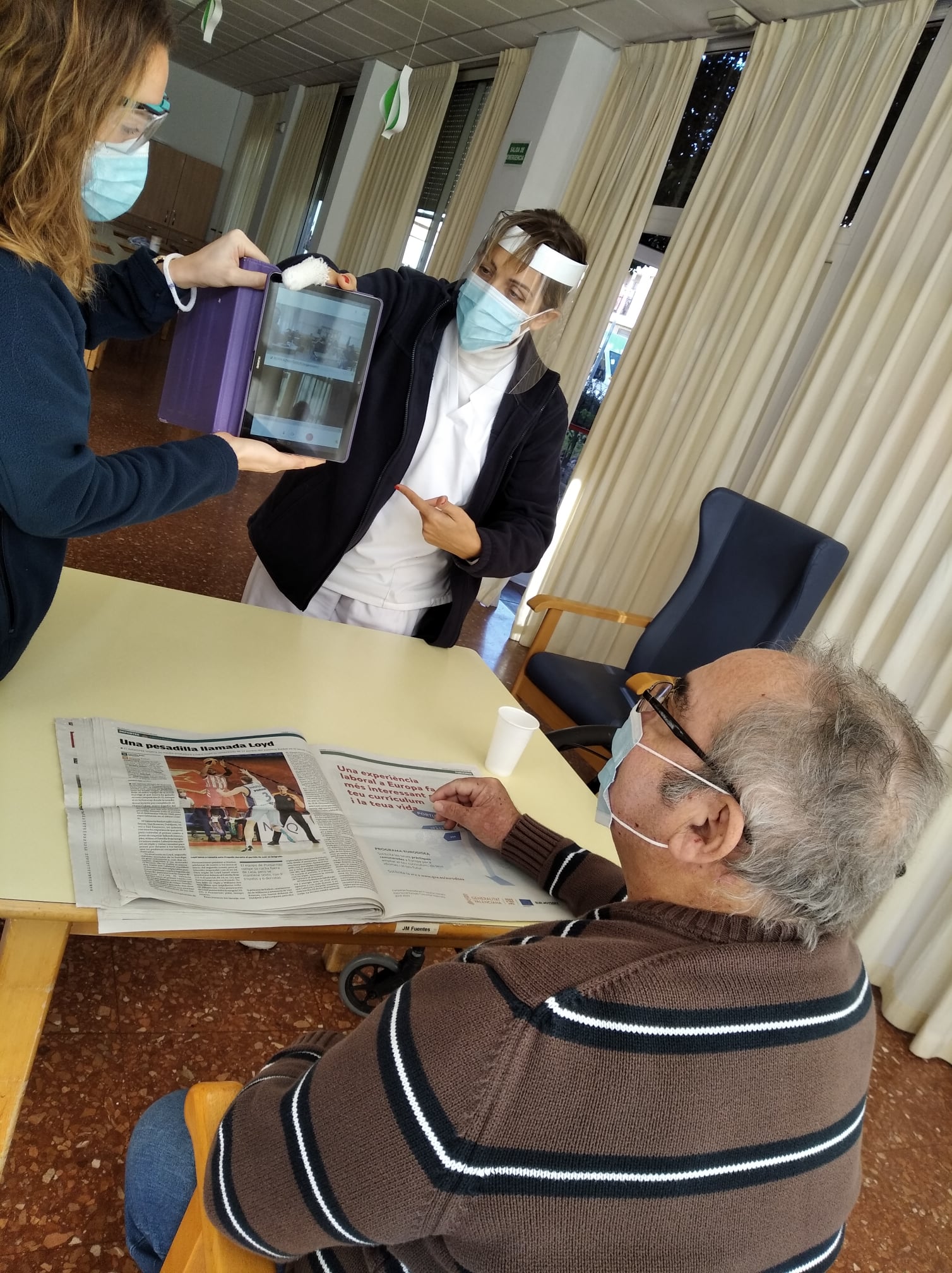 Semana navideña en Massamagrell con almuerzo especial, videollamada con el IES Massamagrell y visita de Papá Noel, que nos trajo un montón de vídeos familiares para nuestros residentes. ¡Feliz Navidad!