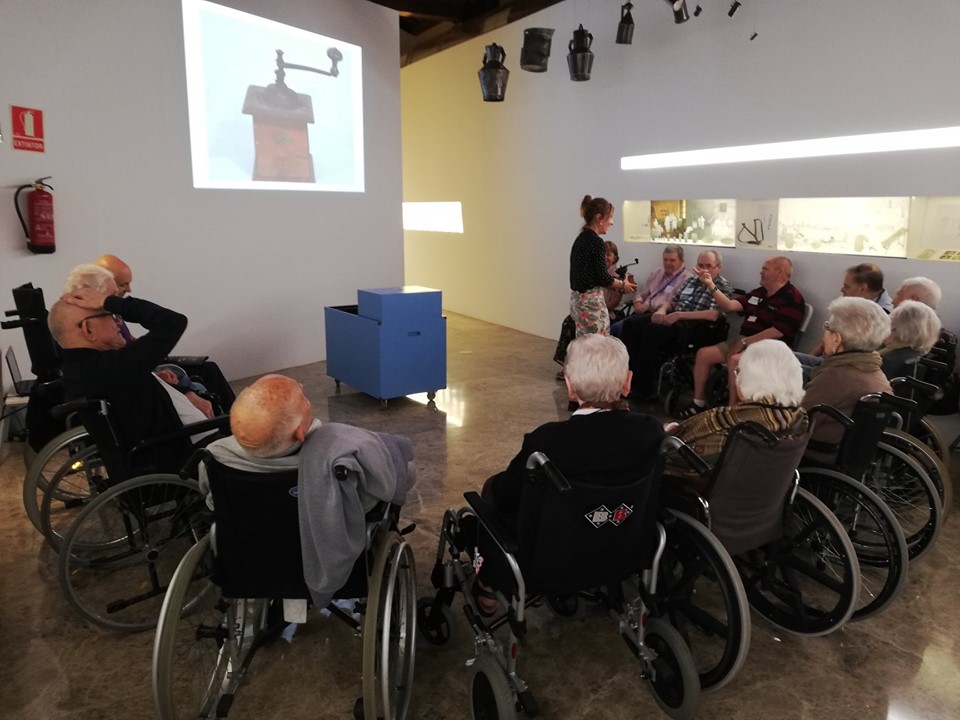 Velluters visita el Museu Valencià d’Etnologia per veure el seu nou projecte «La Caixa dels Rècords» basat en la teràpia grupal de reminiscència a través dels objectes de cultura tradicional de la seua col·lecció, aquesta activitat grupal està destinada a persones amb alzheimer o altres demències en estat inicial.